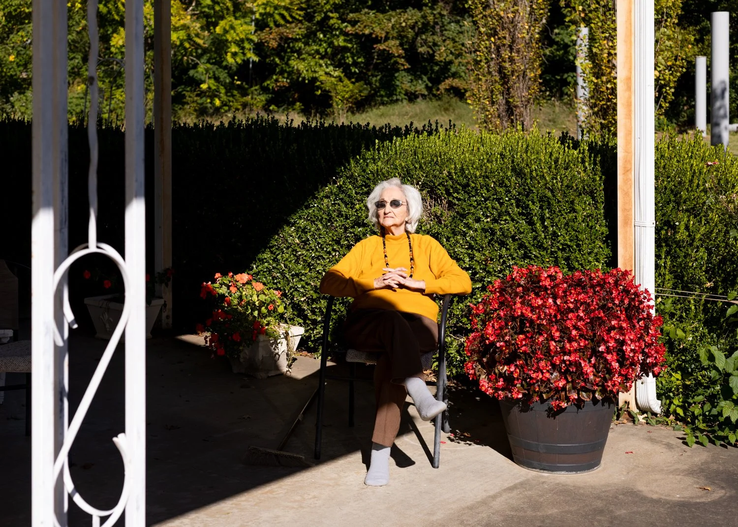 During this, I felt a prevalence of a deeper type of loss within her, one that results from knowing what a full and abundant life and family looks like as well as what it is like to live with the loss of them. I hope through my photos to depict this difficult balance that is often not thought about with the elderly. I aimed to capture this abundance of memories and life that she lived, whether that's through showing the textured wrinkles of her face or the photos she keeps in her house, while balancing this with an emptiness of the house and heart. An empty chair, precious goods boxed away for later, old clothing to be passed down. I wanted there to be a sort of reflectiveness to all of it in order to reflect the time spent there with her as we rummaged not just through her physical mementos, but her mental ones as well. Altogether, I hope the sequenced photos bring both a sadness and a fullness to the viewer as they get to see a life well lived and a heart that has also lost a lot.